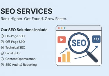 we help businesses increase visibility, attract the right audience, and grow online with data-driven SEO strategies. Our goal is simple — to put your website on top of search engine results and ahead of your competitors. Our Search Engine Optimization Services not just put your website in higher rank but also put your business ahead and in the higher rank from others.